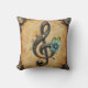 Mechanical clef and flowers to the beat of the clocks. A steampunk-style treble clef, rendered in dark metal with bronze accents and intricate detailing. The clef is adorned with blue flowers that have clock faces at their centers, adding a whimsical touch. Musical notes float near the clef, and small droplets hang from its curves.