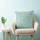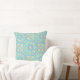 ¡Esta almohada de tiro con amarillo brillante sobre azul turquesa claro es para los bohemios! Ponlo en tu sofá, en tu cama o en tu solárium. Donde sea que lo pongas, te hará sonreír. Medallón amarillo brillante/mandala sobre un fondo turquesa bonito. Diseño de Oregon Tile Maker Fay Jones Day.