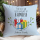 Celebra la temporada navideña con esta encantadora y personalizable almohada de fiesta que presenta una ilustración de regalos de Navidad envueltos coloridamente, hojas de acebo, delicada nieve que cae, un mensaje conmovedor representado en tipografía de letra cursiva elegante que dice "El mejor regalo es la presencia de la familia", texto personalizable y el año actual. Personaliza este diseño agregando un apellido familiar para crear un recuerdo único perfecto para exhibir en tu hogar o regalar a seres queridos. Esta encantadora almohada agregará un toque de calidez y espíritu navideño a cualquier espacio, lo que la convierte en una parte apreciada de la decoración navideña de cualquier persona.