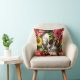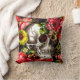 Memento floral de cráneo sobre una almohada de acento encantadora. Personalizable en tu elección de color en la otra cara. Disponible en su elección de tejido interior o exterior duradero. Tómate tiempo para oler a los rosas...
