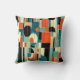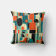 5 star quality pillow with Mid-Century Modern Abstract design including geometric forms, lines, and eye-catching colors of orange, teal, turquoise, black and light yellow. Perfect for giving your room that pop of mid-century vibe.