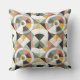 A bold celebration of balance and motion, this throw pillow features a repeating geometric pattern inspired by midcentury modern design. Layered circles, arcs, and angular forms intersect in a refined palette of sage green, warm ochre, soft coral, charcoal, and cream. The composition feels both playful and architectural, making it an ideal accent for contemporary, retro, or eclectic interiors. Perfect for sofas, chairs, or beds, this pillow adds visual rhythm and timeless style to any space.
