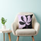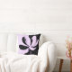 A minimalist abstract throw pillow featuring a soft lavender floral form set against a deep black background.