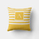 ¡Magnífico! Esta almohada monograma con letra de rayas amarillas y blancas presenta rayas nítidas amarillas y blancas sobre un bloque de color amarillo en la parte inferior, y el monograma inicial aparece en el centro de las rayas con una preciosa letra de serif blanca en el cuadrado amarillo bordeado de blanco. El diseño se repite en la parte posterior. Moderno, atemporal, moda y elegante! Derechos de autor Anastasia Surridge Designs: Monogram Designs, all rights reserve.