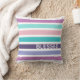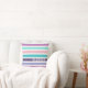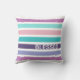 Pastel moderno Rodeado de BENDICIÓN cristiana arroja almohada en franjas horizontales malva, rosa y aqua, con la palabra BENDICADA. Este texto es PERSONALIZABLE para que pueda agregar su nombre o crear su propio texto. Esta almohada cristiana de tiro a rayas con BENDICIÓN haría un verano brillante en la decoración de su casa, y sería un gran regalo para Navidades y cumpleaños. Escoja entre una amplia selección de almohadas cristianas diseñadas por los diseños bereños