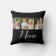 Celebrate motherhood in style with this Mom Established photo throw pillow featuring elegant white script and space for three personalized photos. A heartfelt and practical gift for moms, this custom throw pillow is perfect for everyday use.