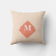 Monograma Art Deco Naranja Cojín decorativo de patrón griego geométrico