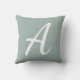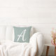 Sencilla almohada monograma lindo en azul espuma marina con una gran letra de escritura moderna.