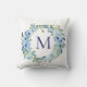 Una hermosa almohada de agua con monograma azul verde floral botánico acuarela. Viene en 2 tamaños.