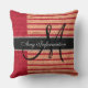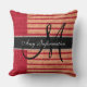 Cojín Decorativo Monograma Bandas Rojas Burlap Jute Rústico