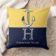 Cojín Decorativo Monograma de ancla amarilla de la mostaza azul de