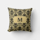 Cojín Decorativo Monograma de damasca negro dorado