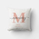 almohada de monograma familiar para padres nuevos que se pueden personalizar con la fecha en que se convierten en padres. Este diseño tiene un guión manuscrito elegante, tipografía moderna. Pillow tiene un monograma inicial M con el nombre de mamá que puedes personalizar.