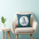 Esta almohada de monograma es una excelente manera de agregar un toque náutico a la decoración de su hogar. Un patrón de estrella dorada aparece contra un fondo azul. Su monograma y apellido están representados en un círculo central. Personalice fácilmente los colores, el apellido y la inicial del monograma según su deseo.