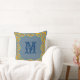 Un bonito o Cojín decorativo para personalizar con iniciales o monogramas, con un borde de flores de Pot Marigold en un fondo índigo. Parte de la colección "Marigold Medley" de Posh & Painterly.