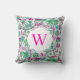 Cojín Decorativo Monograma de vacaciones verde rosada en la playa d