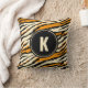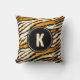 Cojín Decorativo Monograma del patrón de tiras de tigre de Naranja