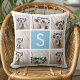 Cojín Decorativo Monograma del Personalizado Aqua Blue Collage de f