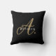 Elegante Cojín decorativo de Monograma Black Gold Script