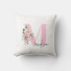 Crea tu propia almohada tipográfica personalizada con una letra personalizado monograma inicial con un elegante ramo floral de acuarela y diseño de tipografía moderna.