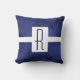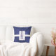 Un aspecto clásico con un toque moderno. Un monograma azul dentro de un rectángulo blanco contra un fondo moteado de azul.