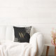 Elegante cojín con nombre y monograma floral de rosas negras y doradas personalizado con inicial de monograma dorado. Diseñado por Thisisnotme©