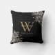 Cojín Decorativo Monograma floral personalizado en negro y dorado