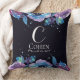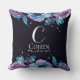 Cojín Decorativo Monograma Floral Púrpura Azul Melancólico