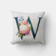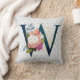 Fondo de estampado vintage, gran letra de monograma W y hermosos adornos florales