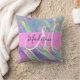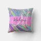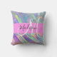 Nombre de monograma holográfico iridiscente de arco iris goril y almohada de lanzamiento inicial. Su nombre personalizado y su monograma están escritos en un guión elegante con letras a mano con un fondo rosado. ¡Un regalo perfecto de cumpleaños o Navidades!