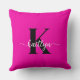 Esta sencilla y elegante almohada rosa cálido de 20 pulgadas de lanzamiento con tu nombre en un tipo de letra de guión a la moda en blanco y tu primera inicial en un tipo de letra de tapa moderna en negro es perfecta para ti. Es de diseño y a la vez muy clásico. Se verá fabuloso en su dormitorio, sala de estar, sala de estar, cobertizo.