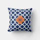 Cojín Decorativo Monograma Patrón real azul de quatrefoil con Naran