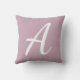Sencilla almohada monograma lindo en color púrpura claro con una gran letra de escritura moderna.