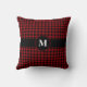 Cojín Decorativo Monograma Rojo y Negro Gingham Plaid Checs Patrón