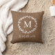 Esta almohada rústica de lanzamiento de rama de laurel presenta una corona de laurel dibujada a mano con un nombre de monograma y guión. Haga clic en editar en personalizar.