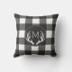 Cojín Decorativo Monograma Rústico de Antlers en Blanco y Negro