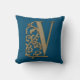 Cojín Decorativo Monograma V Boda azul oceánico Cumpleaños