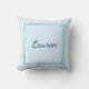almohada monogramada de lanzamiento azul. Dale un regalo personalizado. También disponible en marrón.