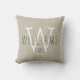 ¡Familia! almohada de decoración casera personalizada.almohada monogramada personalizada de color beige, blanco y negro con apellido familiar en el diseño de la tipografía de fondo fotográfico de lino beige IMPRESO. Elke Clarke© Hace un gran regalo para recién casados o para su familia. Excelente accesorio moderno y elegante para su dormitorio, silla favorita, como divertida decoración en su habitación familiar o agregado decorativo formal a su salón. Personalizar con sus nombres, fecha inicial y fecha de boda.