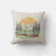 Una almohada con un sol sobre una escena de montaña salvaje, con la frase "Rompe del barro" centrada debajo de la imagen. El diseño sugiere una escapada pacífica y atrevida del estrés diario, evocando imágenes de belleza natural y tranquilidad.