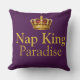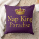 Reign supreme over naptime with this luxurious deep plum and gold pillow featuring "Nap queen/king in residence" with crown icon. Perfect statement piece for master bedrooms, guest rooms, or reading nooks. Great gift for anyone who takes their rest seriously. Rich jewel tones and metallic gold accents add regal elegance to beds and couches.