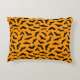 Esta almohada acentuada presenta un patrón espeluznante de murciélagos negros voladores con ojos amarillos en un fondo naranja, la perfecta decoración de Halloween para los amantes de los murciélagos.