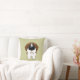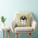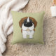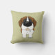 Nariz grande linda St Bernard ofrecido en una almohada de tiro coloreada de color caqui.