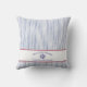 Welcome your friends and family aboard your coastal decor boat or cottage home with this throw pillow. This nautical striped monogram boat name design features classic blue pinstripes and a compass rose emblem. Personalize with your boat's name and available in a collection of nautically themed items. Perfect for grilling on your boat or back yard, boat lovers, coastal homes, or seaside entertaining. Stylish and personalized, this nautical design adds a crisp maritime touch to everyday use.