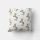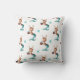 Complementa tus decoraciones de Navidad en color azul turquesa y rojo con esta almohada única con un patrón de renos sirena sosteniendo un regalo rojo. Ilustrado y diseñado por Patricia Alvarez.