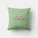 Añade un toque de encanto retro a tu casa con este Navidad festivo lanzando almohada. Este diseño moderno de mediados de siglo muestra el texto "Feliz Navidad" en la tipografía de inspiración vintage. El fondo es verde claro, acentuado por los primeros estallidos del estilo de los años 50, copos de nieve.