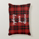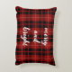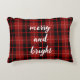 Un cojín decorativo de Navidades mora y brillante de cuadros rojos.