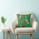 La almohada festiva incluye aves de bullfinch rojas con conos de pino y ramas verdes sobre fondo verde.