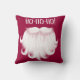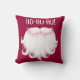 Acogedora almohada vacacional con la esponjosa barba blanca de Santa sobre un fondo rojo festivo, acentuada por su tradicional Ho Ho.