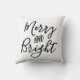 Escritura a mano con secuencias de comandos más finas y brillantes | Cojín decorativo de vacaciones en blanco y negro. Diseño moderno de tipografía de una casa de campo por Blackberry Boulevard "Merry and Bright" escrito en una letra de escritura negra con un sólido fondo de color blanco. Otros colores disponibles en la tienda. Una almohada de acento perfecta para su decoración de vacaciones.